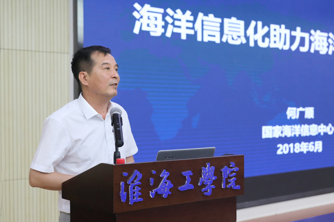 何广顺主任作了主题为《海洋信息化助力海洋强国建设》的报告。他从信息化发展总体情况、信息化核心技术概览、海洋信息化发展现状、海洋信息化未来规划等四个方面对我国系统部署和全面推进海洋信息化工作的相关情况进行了介绍。他结合自身研究和工作实际,讲述了我国全面布局海洋信息化建设,加强云计算、大数据等新一代信息技术在海洋领域的深度融合,着力推进形成“信息透彻感知、通信泛在随行、数据充分共享、应用服务智能”的海洋信息化体系建设的过程,并对未来我国促进涉海信息基础设施集约利用、海洋信息资源融合集成与共享开放等方面的部署和考虑进行了介绍。